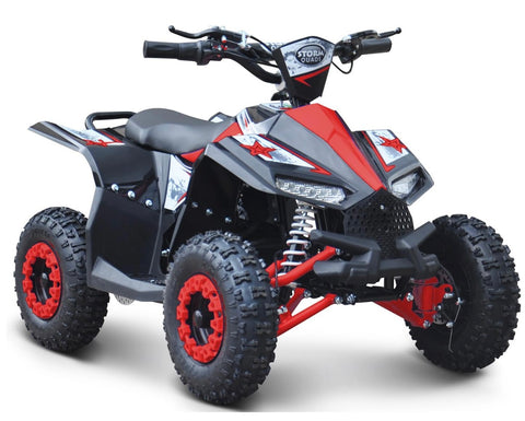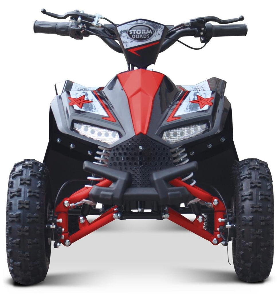 Built tough with a steel frame, chunky off-road tyres, and front and rear suspension, the Ranger can handle bumps, grass, and light terrain with ease. Safety is built in too- with an adjustable parental speed limiter, handlebar-mounted brake levers and an emergency cut-off tether that's stops the quad instantly if needed. A forward and reverse selector gives young riders more control and confidence, while the easy twist-grip throttle keeps operation simple. the disc brake system provides strong, reliable stopping power, and the sport-style bodywork and bright LED lights make the Ranger look as exciting as it rides.